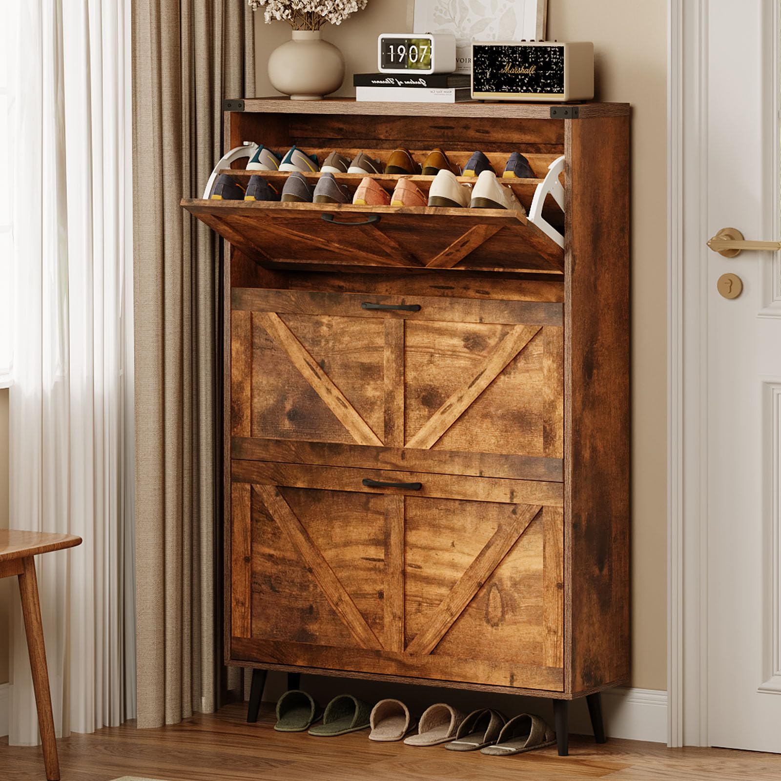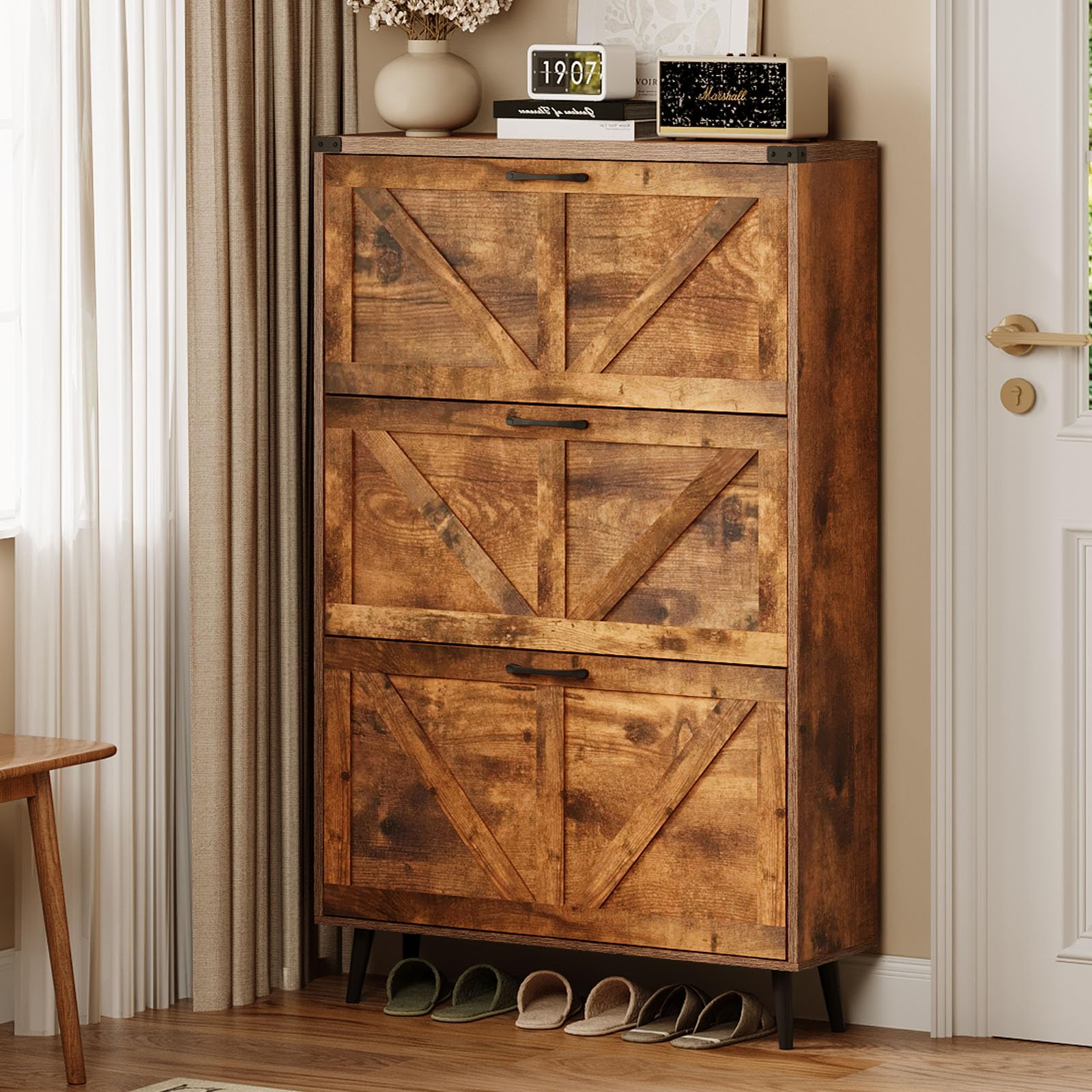 Armário de armazenamento de sapatos com 3 gavetas...