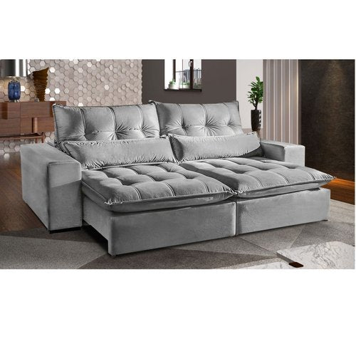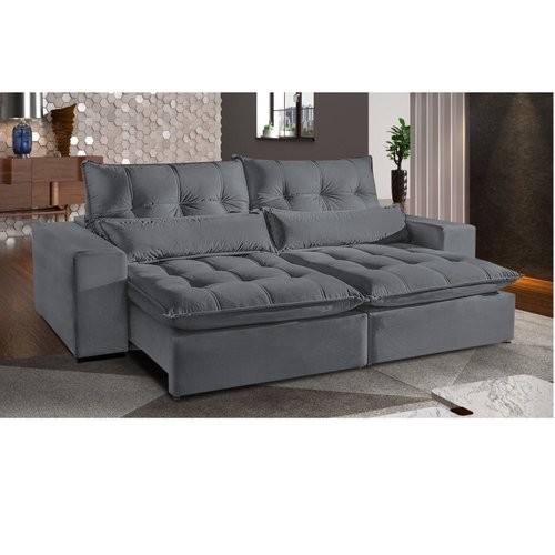 Sofá Retrátil e Reclinável 2,30m Londres Estofados Cinza